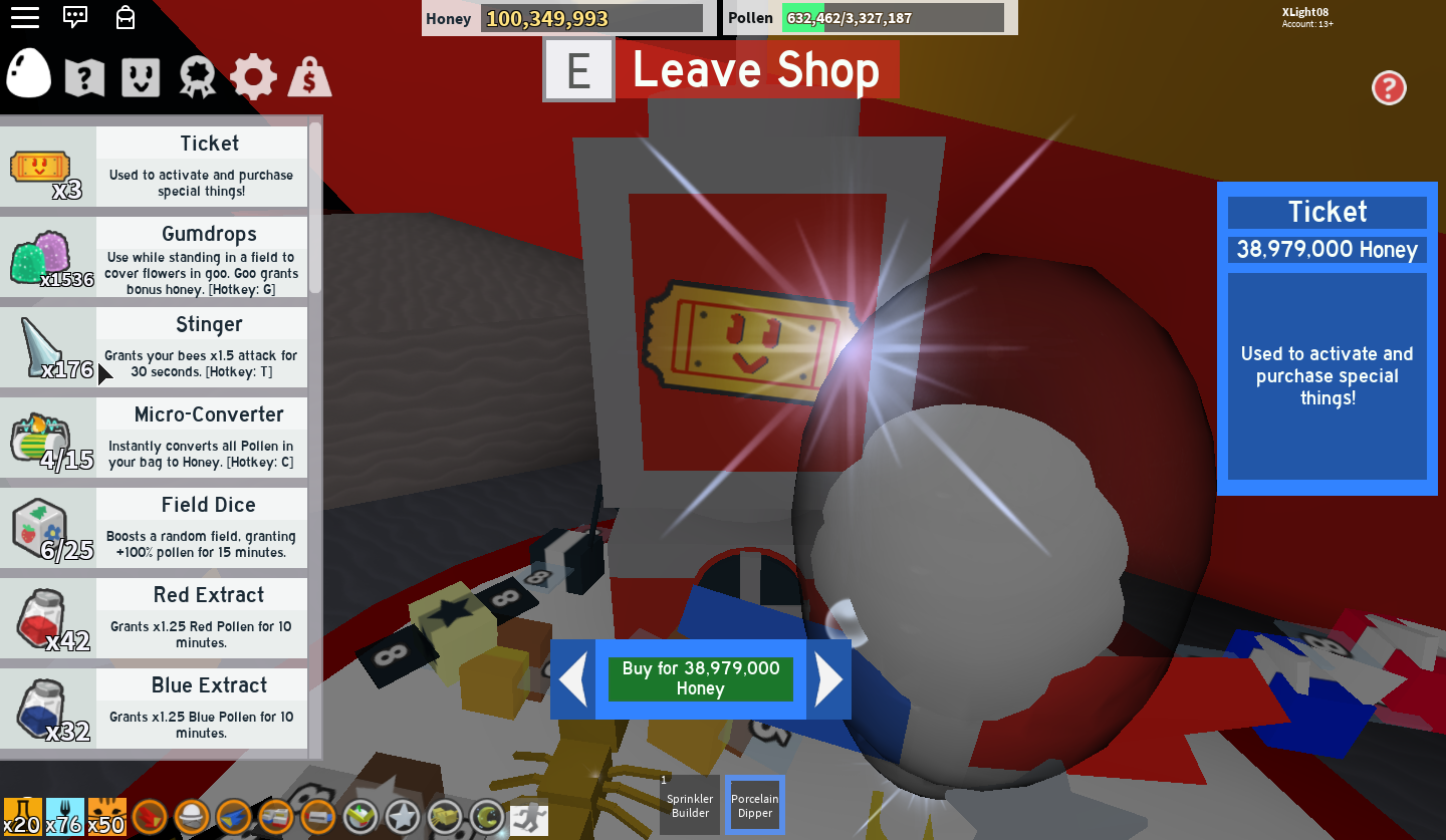 Almost Have Enough Tickets For My First Event Bee Tabby Beeswarmsimulator from i.redd.it All of them are verified and tested today! It's also used to buy things from the ticket tent , namely certain event bees , gold eggs , star treats , and a cub buddy. Your hive grows larger as you get more bees and you can explore more of the mountain. Tickets are an inventory item and a form of currency that can be used to purchase items such as gumdrops , stingers , and royal jellies. In addition to the above, we also want you to enjoy much more. The end goal of the game is to make honey and this simple premise is more than enough to keep the players engaged and entertained. Roblox bee swarm simulator is a game where you can grow your own bees and make honey. Roblox's bee swarm simulator is a reenactment diversion made by a roblox amusement.